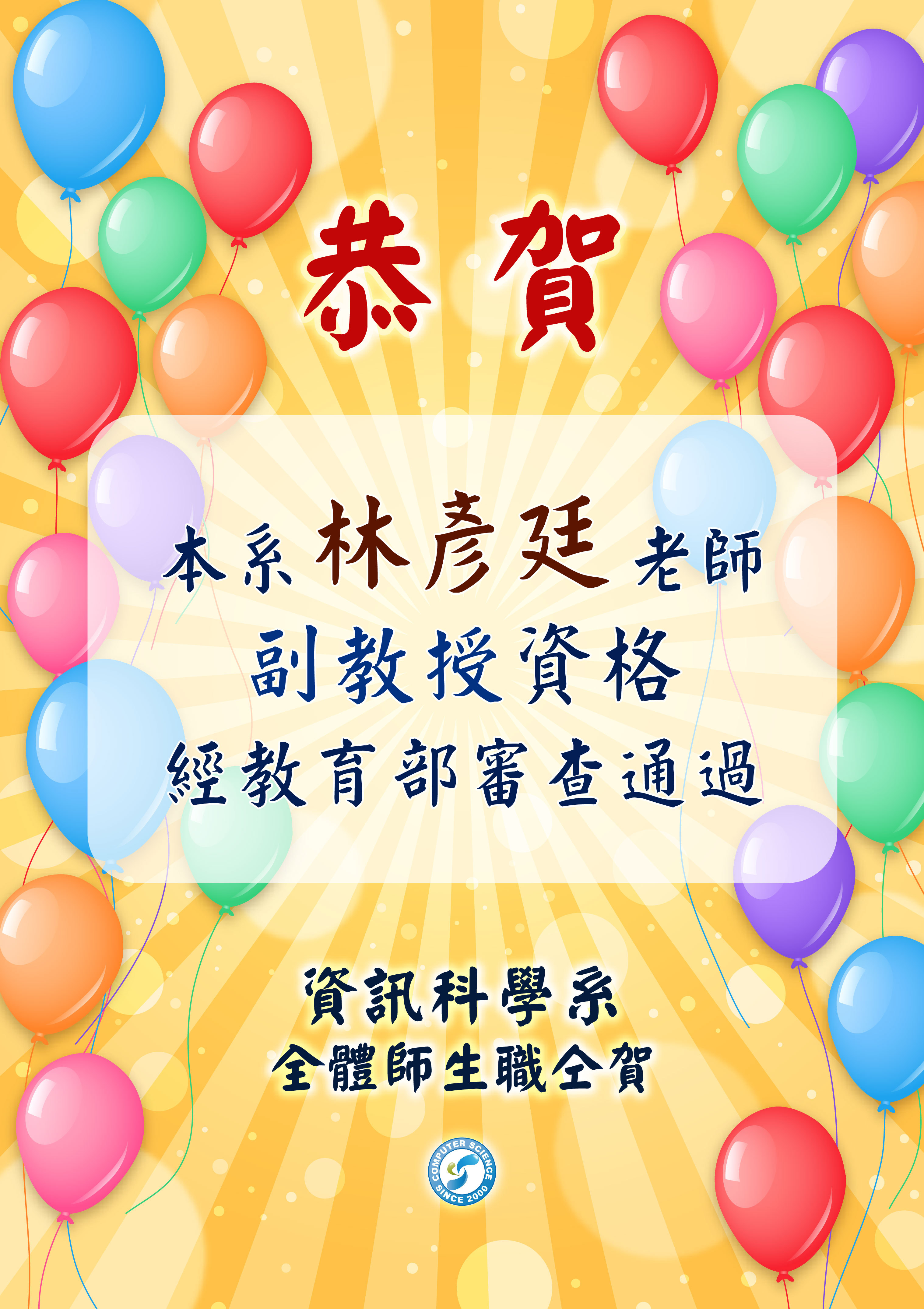 【恭賀】本系(林彥廷教師)副教授資格經教育部審查通過