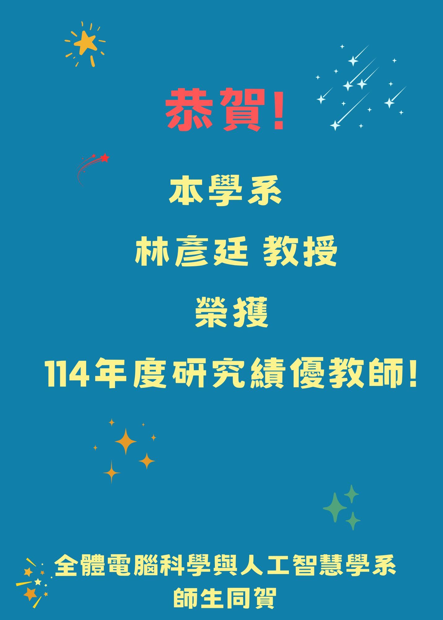 【恭賀】 林彥廷老師榮獲114年度研究績優教師!