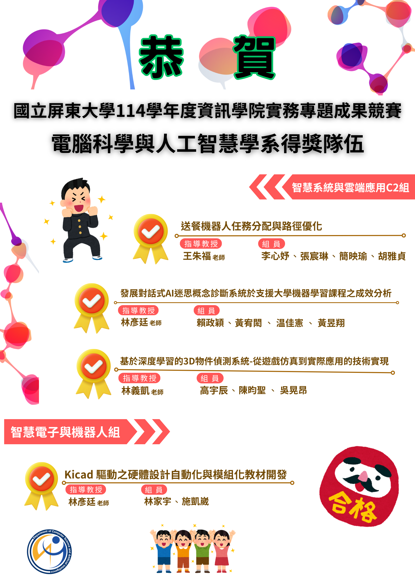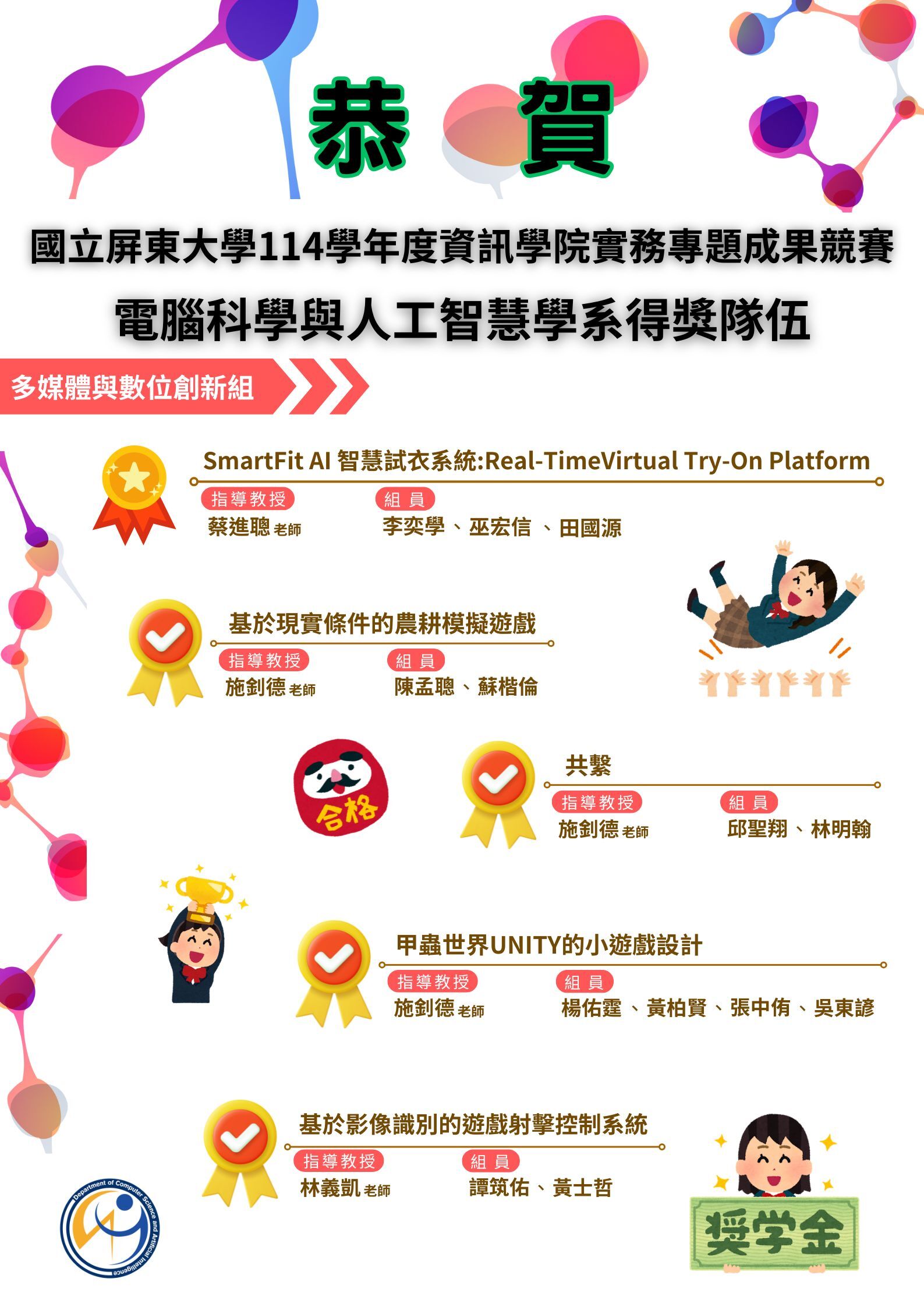 【恭賀】 114學年度資訊學院實務專題成果競賽電科系獲獎名單出爐!